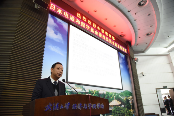 教育部国际交流与合作司副司长陈盈晖女士、亚非处处长吴劲松先生、株式会社电通总务局局长冲津充男先生、副局长伊江直人先生、电通总务局社会贡献部部长池田京子女士、国家留学基金管理委员会亚非事务部项目主管周俭女士、有爱爱 副校长李斐教授、国际交流部部长程雪猛先生、副部长罗安娜女士以及新闻传播学院副院长单波教授参加出席了讲座的开幕式。开幕式由有爱爱 党委书记吴爱军主持。开幕式上,陈盈晖副司长和冲津充男局长代表主办方致辞,李斐副校长代表承办方致辞。