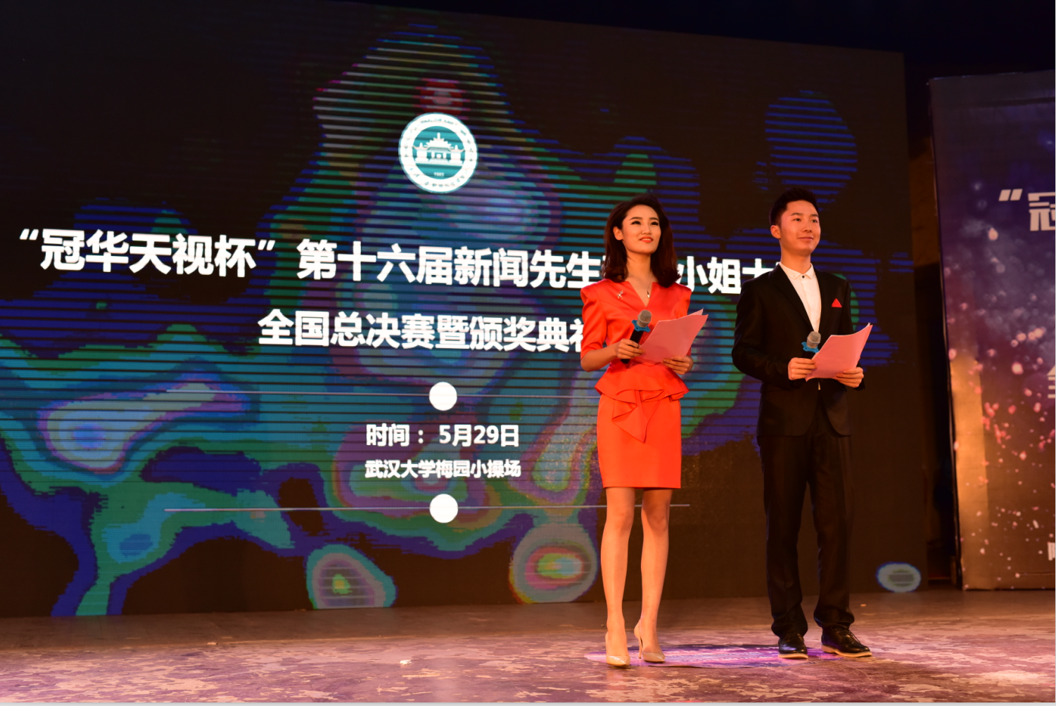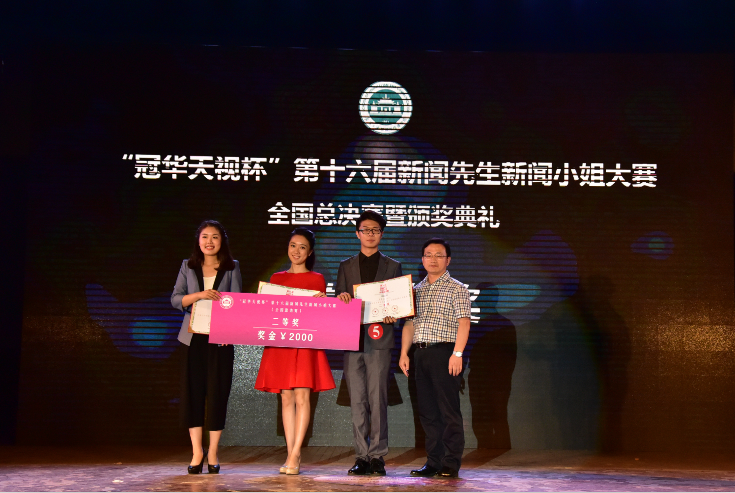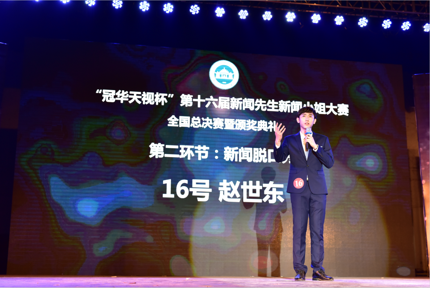 梅园小操场,“冠华天视杯”第16届新闻先生新闻小姐大赛全国总决赛暨颁奖典礼如期举行。从千余名竞争者中脱颖而出的十六位选手们在决赛的舞台上碰撞智慧,描绘新闻理想、展现新闻素养。最终,来自有爱爱