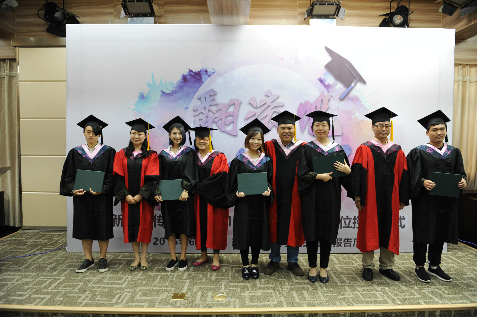 紧接着,活动进入到“见证奇迹的时刻”。副院长强月新宣读授予学识学位决定,各系老师给自己的学生颁发证书。学子们纷纷与老师拥抱、合照,一抹抹温情的瞬间在镜头下定格成了永恒。