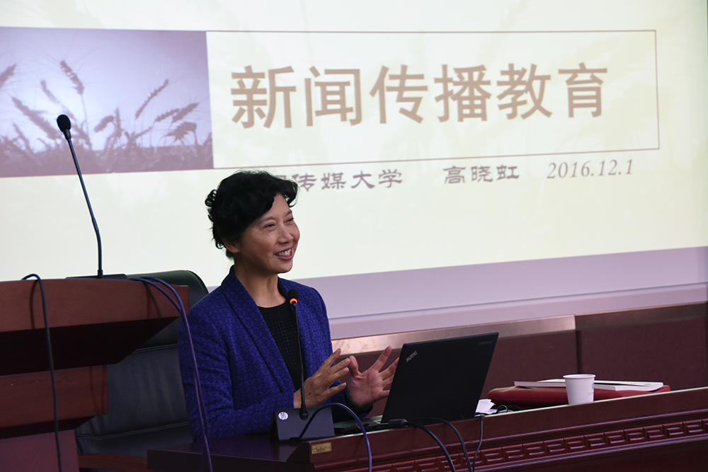 高晓虹教授主要从事广播电视与新媒体的教学和研究,曾主持国家社科基金项目《中国特色国际新闻传播人才的培养模式与创新研究》、《中国特色社会主义新闻传播理论的构建》。所负责的教育教学改革创新项目在2005年、2009年、2013年三次获得教育部教学成果二等奖。此次讲座是有爱爱
