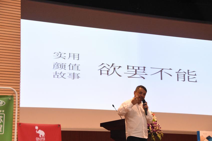 最后,艳遇中国首席设计师、蓝道广告公司创意总监江绍雄先生给同学们带来了精彩的讲座——《欲罢不能——谈谈创意所能》。在他的演讲中,他用有趣的言语告诉了同学们获取创意的来源,并播放了以最近大热的电视剧《人民的名义》为素材制作的视频,并以《人民的名义》为话题,结合个人经历谈论想法。其中,详细谈到了关于产品的三件事:刚需、痛点、高频。用Dyson supersonic吹风机做案例分析,同时谈到Dyson其他极具设计感的产品,强调创意就是解决问题,就像医生所采取的手段。江先生通过介绍Dyson的设计产品和设计理念,向在场各位具体诠释了产品的三件事。接着,谈到关于品牌的三件事:实用、颜值、故事,并以日本品牌“白色恋人”进行解读,也谈到了其他的品牌。江先生认为“做人跟做品牌一样,是讨喜,不是讨厌”。“亲切感人,欲罢不能”成为品牌建设的总结。江先生还分享有关创意的三件事:相关、唯一、震撼/格调。“好创意,就是欲罢不能”,这是江绍雄先生演讲的核心,他谈到好创意往往合情不合理,也提到创意是自然产生的。关于“旧元素,新组合”,江先生理解为“司空见惯,闻所未闻”,以一系列艳遇中国的作品,生动地阐述了要在创作中实现“和而不同”。接着,江先生用一系列广告作品来阐述广告创意需要走心,“以诚换诚”。最后,江先生以简洁风趣的语言将所有的要点连贯起来,对整个演讲进行了总结。