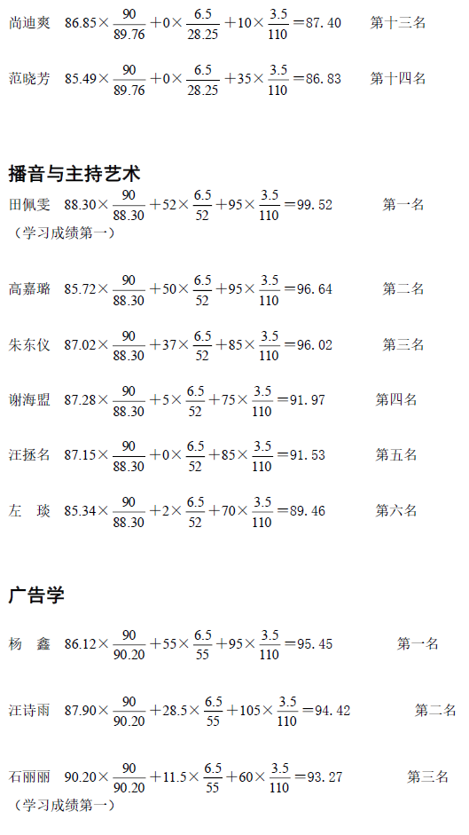 根据学校本科生院有关文件精神,经学院推免工作小组审核后各专业排名情况通报如下:
