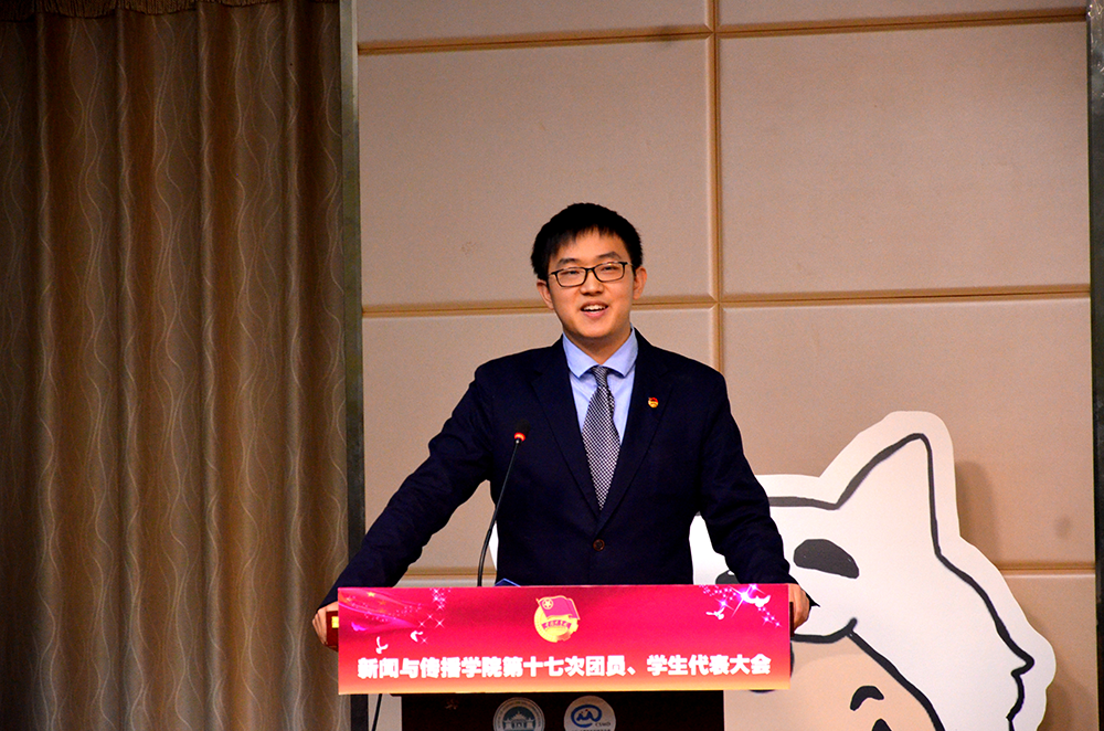 随后,校学生会常务副主席陈煜桦同学首先表达了对过去一年新闻院团学工作的肯定和认同,其次他作为同样从事团学工作的同学对未来一年的有爱爱 团学工作提出了完善体制建设,开展网上学生会工作等建议。