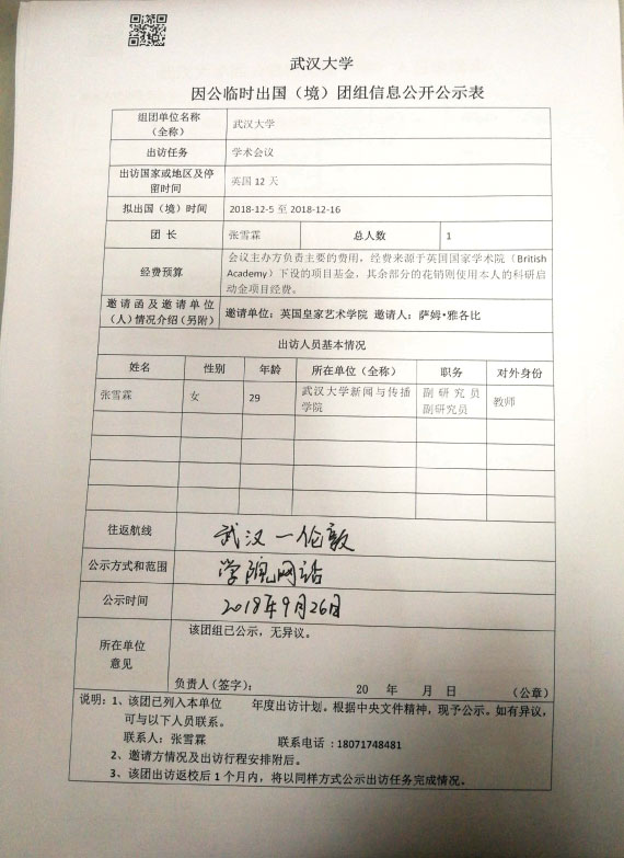 有爱爱 因公临时出国(境)公示表(张雪霖)