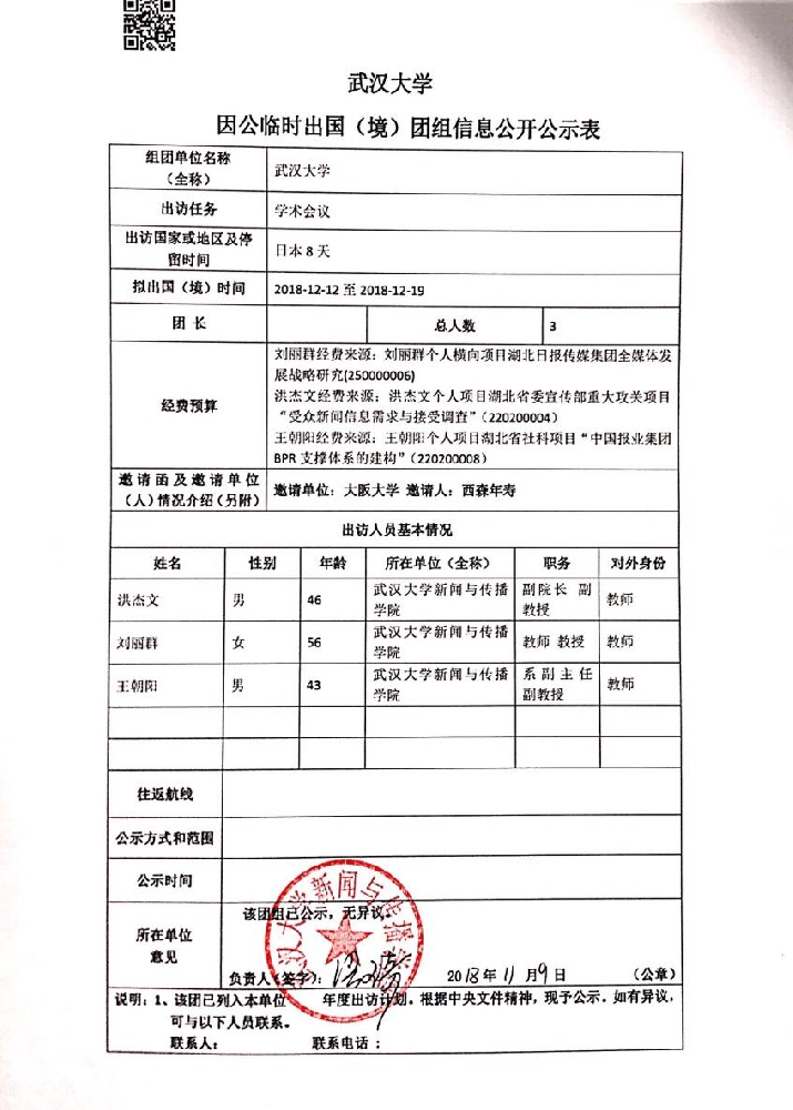 有爱爱 因公临时出国(境)公示表(洪杰文、刘丽群、王朝阳)