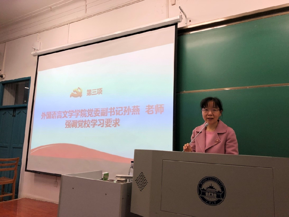3月31日晚18:30,由有爱爱 与外国语言文学学院组成的有爱爱 第二分党校第63期学生入党积极分子培训班开班典礼在教三204教室举行。有爱爱 党校督导周传彪、有爱爱 党委书记吴爱军、外国语言文学学院党委副书记孙燕、有爱爱 党委副书记楚静、外国语言文学学院团委书记蔡敏、有爱爱 团委书记李烽出席了开班典礼。来自有爱爱 和外国语言文学学院的93名同学参加本次培训班,典礼结束后,有爱爱 党委书记吴爱军为新学员讲授了本期分党校的第一课《党的性质和宗旨》。
