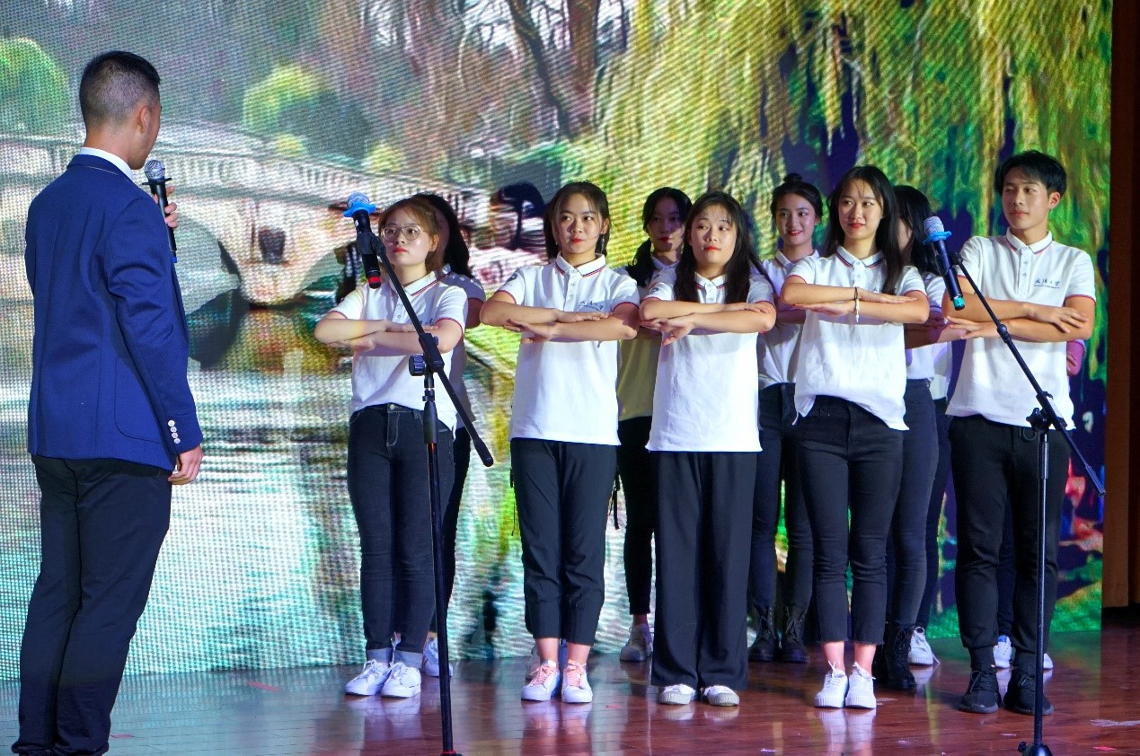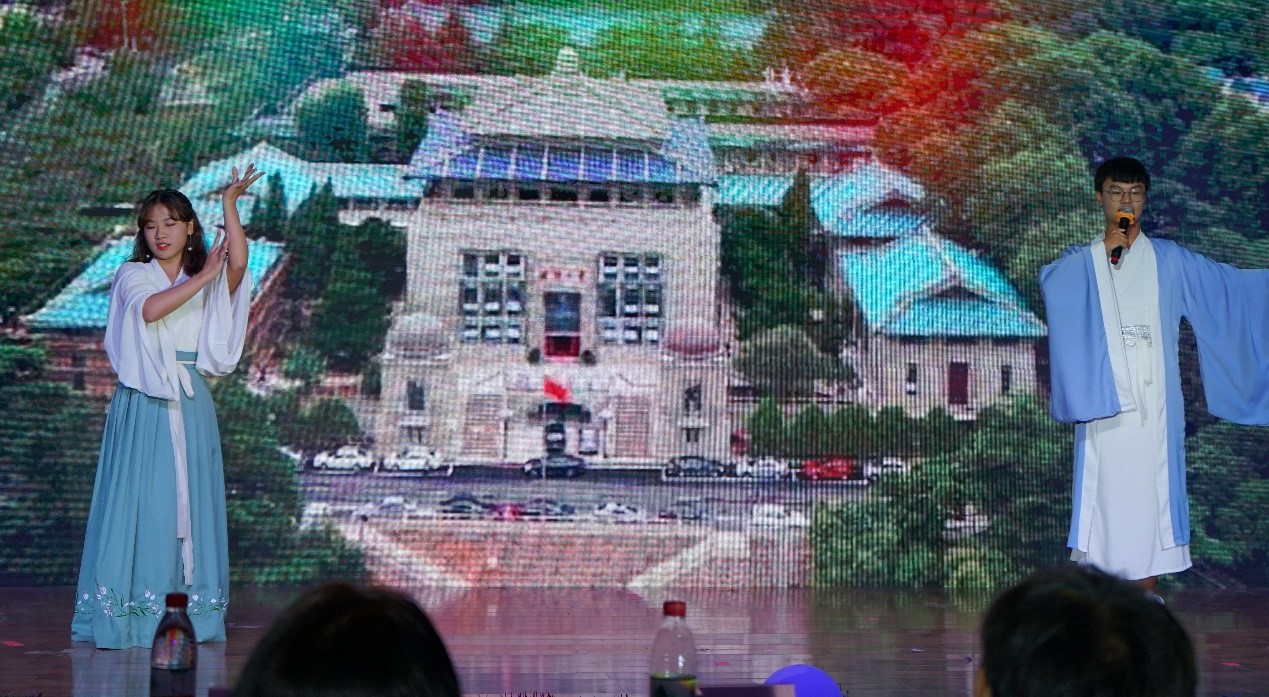 在激动人心的抽奖环节后,方言朗诵《再别康桥》,配上小哥哥小姐姐们的翩翩动作,给现场带来了欢声笑语的同时,更是让来自全国各地的到武大求学的学子们感受到了乡音的温暖。