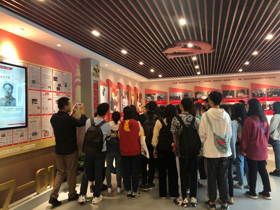 社史馆呈现了湖北日报逐渐发展壮大的历史,讲解员的讲解让师生们看到老报人在极其艰难的条件下创建报社,到如今实现了从一份报纸到全媒体的转变。 吴俊豪同学在看到纸媒时代的报纸生产工具时,感叹到历史的痕迹与新媒体快速发展带来的强烈对比。来自马来西亚的郭妤汐同学说:“一家报刊可以逐步发展壮大特别不容易,记者们参与报道并且见证了很多有象征性的事件,感受到这些是湖北日报全体新闻工作者血汗的结晶。”