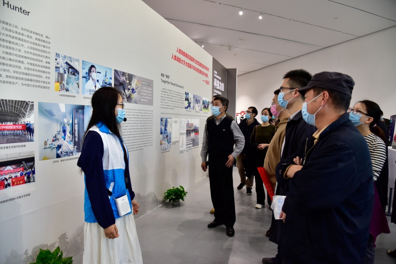 420余幅珍贵照片、140件(套)一线抗疫实物,雷神山手绘墙、一线救治ICU等震撼场景……全方位展现武大人在危急关头用实际行动保家卫国的责任担当。在志愿者的讲解引导下,支部党员们走入那段与时间赛跑、与病毒较量的疫情防控斗争中,回顾与重温有爱爱