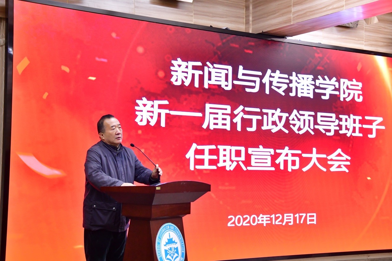 院长强月新代表新一届行政领导班子发言,他简要总结了学院上届行政领导班子在任期内的工作,对姚曦副院长、程明副院长表达感谢,对他们的付出与成绩致以敬意。真诚感谢学院全体教职员工的辛勤付出和大力支持,希望下一届行政领导班子能够不忘初心,砥砺前行。切实履行学院党政共同负责制,充分激发全体教职工的积极性和创造力,加强队伍建设和人才培养;依规则依原则办事,以身作则,敢于担当,善于作为,守正创新,把握机遇。