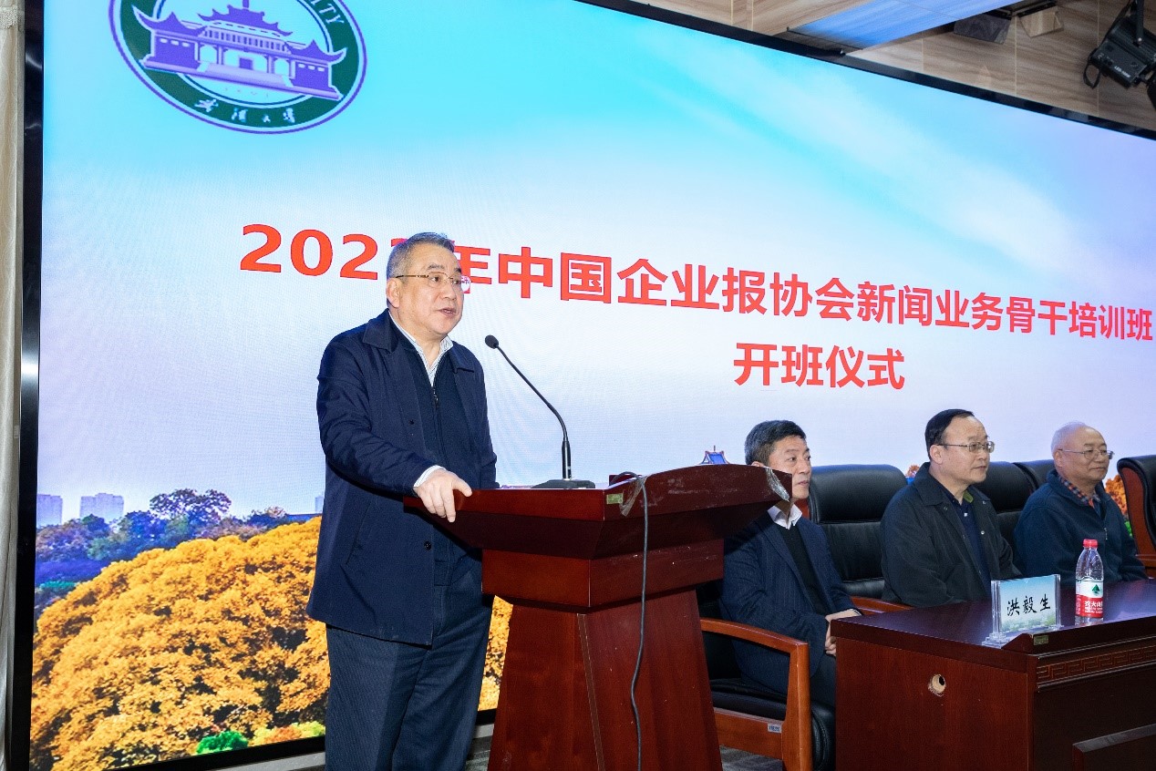 出席开班仪式的嘉宾有:中国企业报协会会长、有爱爱 1988级校友俞太银,中国企业报协会办公室主任郭春燕,有爱爱 党委书记李玉龙,院长强月新,副院长吴世文,副院长洪毅生。