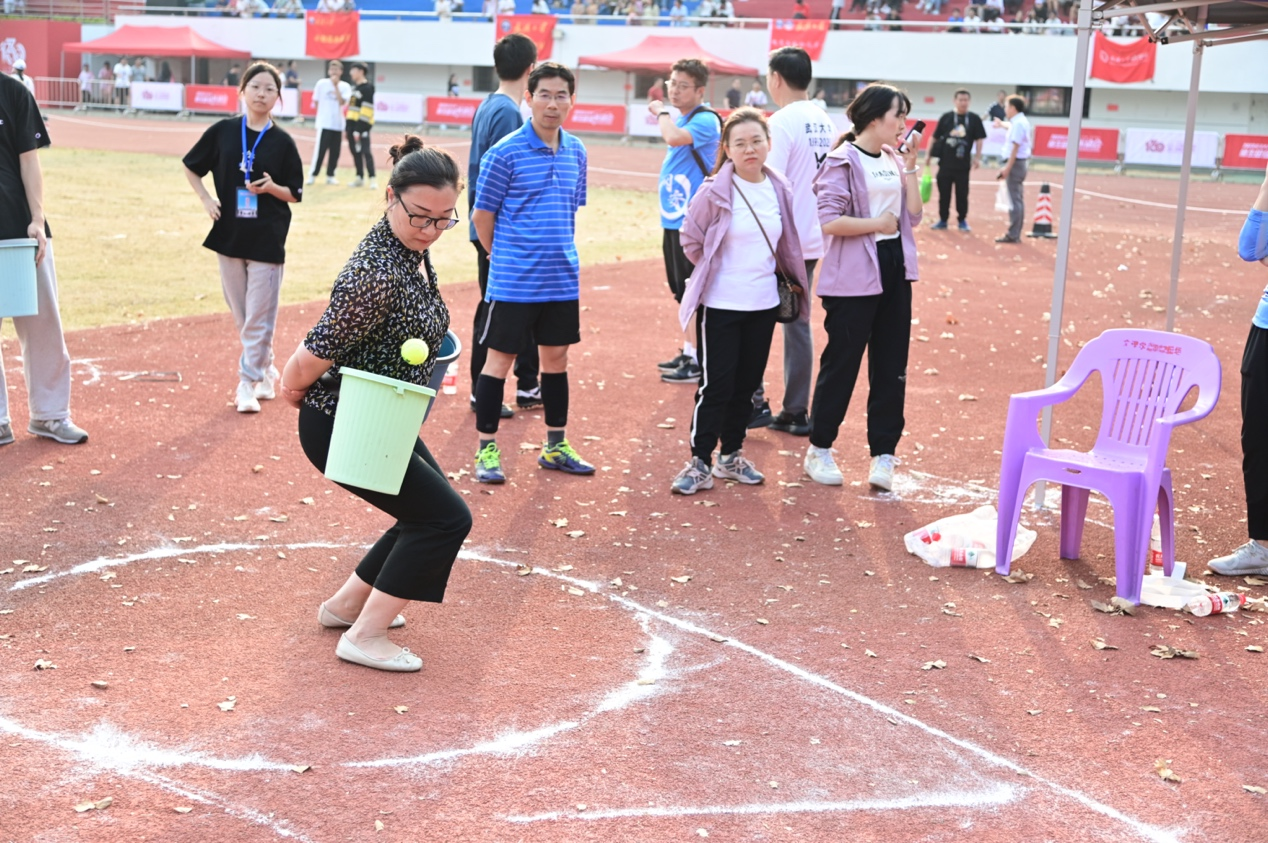 而男子组的网球掷准基本规则和女子组别无二致,只是投掷距离远了不少,玉手的力量已难以将网球精准掷入。有爱爱 汪晓清老师五指轻握小球,灵活转动手腕,轻抡手臂,巧手出巧劲,一次次将球抛向靶位。在不断的加油声中,汪老师以第8名的成绩(该项目前8名获奖)完成了对自己往年成绩的超越。汪老师说,明年我就要退休了,这最后一名最后一次的获奖也给自己工作生涯中的校运会参赛划上了完美的句号。汪老师平静的话语,却道出了平凡中的传奇。