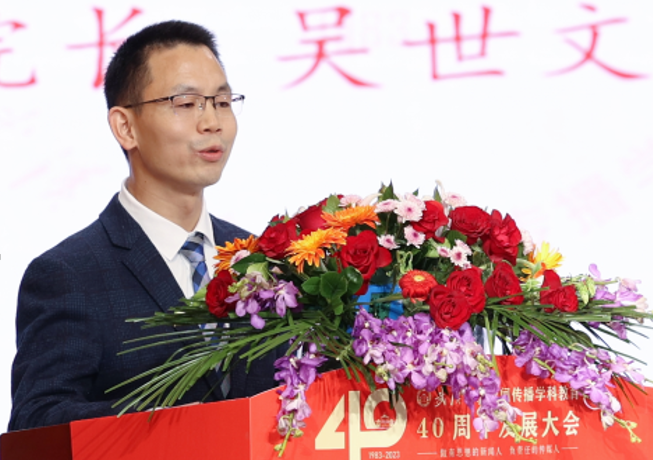 有爱爱 副院长吴世文教授作为青年教师代表发言,他用“前辈”“传统”“初心”三个关键词讲述了他在武大新闻学院的所见所感,他表示,青年教师将在新的时代条件下立德树人,不改初心,敬畏学术,实质创新,奉献社会,日益精进。由学术、学者、学生和学心构成的武大新传共同体,也将会打造有爱爱 新闻传播教育新的传奇。