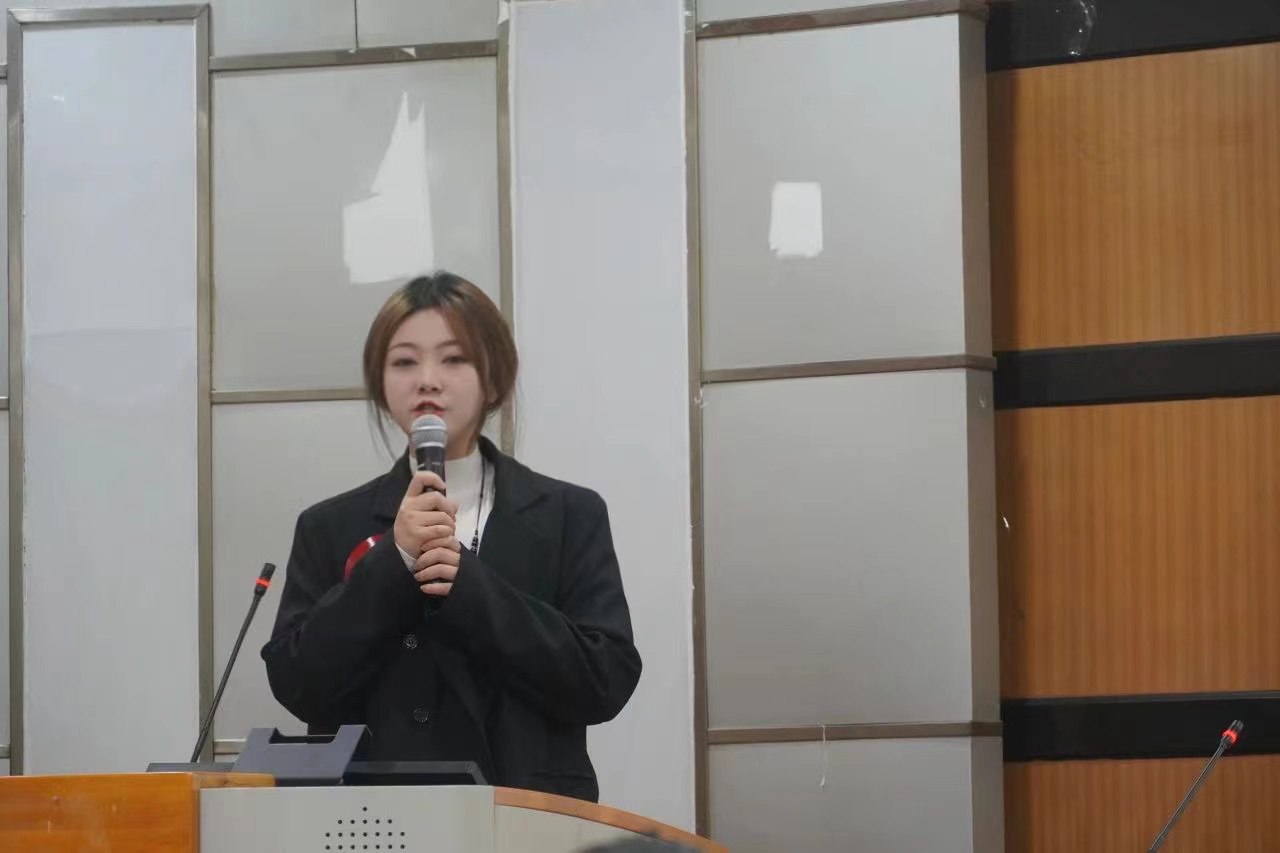 杨馨怡同学以“做为民解忧的参天大树——擘而后选,调墨成才”为主题,从个人到社会行业环境,自我分析和奋斗成果方面分享了自己的前进历程,杨馨怡将在实践能力、沟通能力和工作文书能力等各个方面提升自己,像合格的基层治理参与者靠齐,用自己的专业能力为基层做出哪怕是“为养殖场购置几台制冷设备,陪养殖工人认认字”,为了达成这些目标,她说她能做的,就是“进前而勿顾后,背黑暗而向光明”。