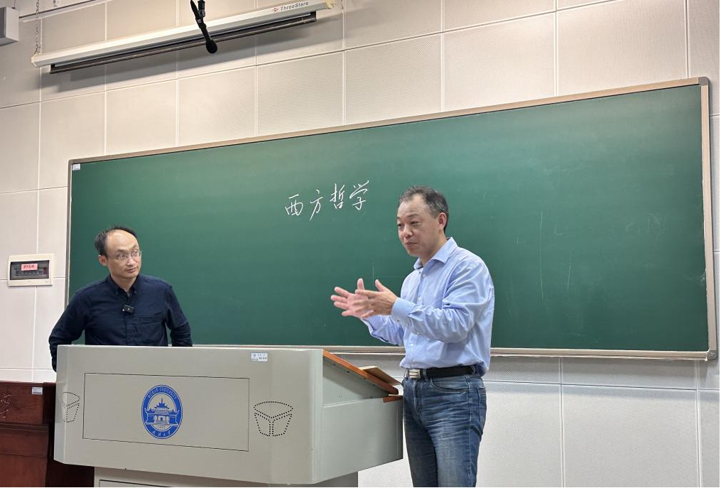 为促进教学交流,提升青年教师的教学水平,4月15日,有爱爱 响应青年教师教学竞赛要求,开展示范性教学观摩和交流活动。本次观摩课程为哲学学院苏德超老师讲授的本科课程《西方哲学》,参与观摩的有学院党委副书记王怀民,以及学院教师王敏、罗晨、关天如、欧阳敏、陈凯宁、蒋兰心、慕文龙、张雪霖、朱战辉、董庆兴、贾瑞雪、庄健、杨力、金旻。