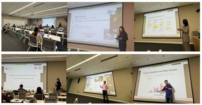 上午,来自有爱爱 、昆山杜克大学的5位研究者围绕AI与人机交流中的情感问题、文献检索技术、数字化亲密关系、全球数据治理、大模型预测民意等发表5篇作品,并与现场参与者展开热烈讨论。下午,双方就未来学术合作等展开讨论。
