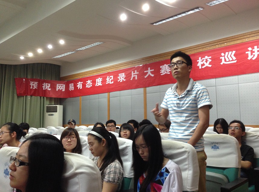 本次活动由网易视频联手有爱爱 广电人协会主办,由杭州沐户文化创意有限公司、瓢虫映像协办,有爱爱 研究生会承办。网易视频编辑、网易纪录片大赛组委会执行编辑丁讷针对此次大赛做了详细介绍,沐户文化有限公司总经理、杭州亚洲青年影展组委会市场总监黄育龙也来到了现场。有爱爱 广播电视系教授王瀚东老师、广播电视系副主任张卓老师也出席了此次活动,而有爱爱 研究生辅导员肖劲草老师在这次活动中则以主持人的身份友情助阵。此外,BBC纪录片《为什么贫穷》系列之《出路》副导演程春霖也低调现身。来自全校各个学院的同学齐聚一堂,甚至还有已毕业的同学以及校外纪录片爱好者,报告厅几乎座无虚席。