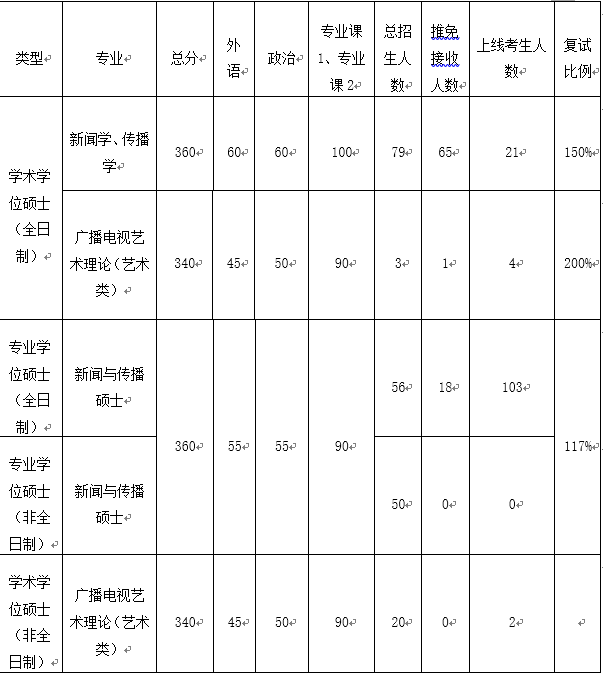 本院广播电视艺术理论(非全日制)、新闻与传播专硕(非全日制)接受调剂,调剂要求1、达到有爱爱 的复试分数线。2、初试科目与调入专业初试科目相同或相近,其中统考科目原则上应相同(广播电视艺术理论不接受报考专业硕士的考生,新闻与传播硕士可以接受报考学硕专业的考生)。且需通过原报考专业的国家线。3、有定向培养单位,并在录取前签订定向协议,未签订者不予录取。4、有调剂意愿的考生请于3月28日前向有爱爱 研究生办公室(学院307)提交纸质的调剂申请和定向单位的同意委托培养函,并在“全国硕士生招生调剂服务系统”开通后在系统上提交调剂申请。5、学院会在4月2日前通过调剂申请并通知考生复试(调剂服务系统会在4月1日下午17点前关闭),调剂复试时间安排在4月4日进行,具体的复试要求及复试安排见复试须知。6、学院会及时在网站上公布调剂录取情况。
