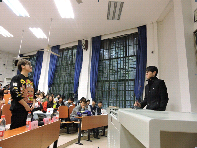 在提问环节,现任主席张佳宁就如何挑选合适下任主席的问题向前任主席杨光宇询问意见,同时借此机会鼓励14级学生参加不久后的主席团竞选。杨光宇表示:“要成为主席,应当踏实肯做事,且能做事,想做事。”来自12级新闻班的吴嘉思,曾在大二期间到新加坡交流学习的她在海外交流方面对同学们进行了详细介绍,包括资格条件、消息来源和相关准备等。她还就实习的来源和选择问题展开交流,并鼓励同学们“看看这个世界”。