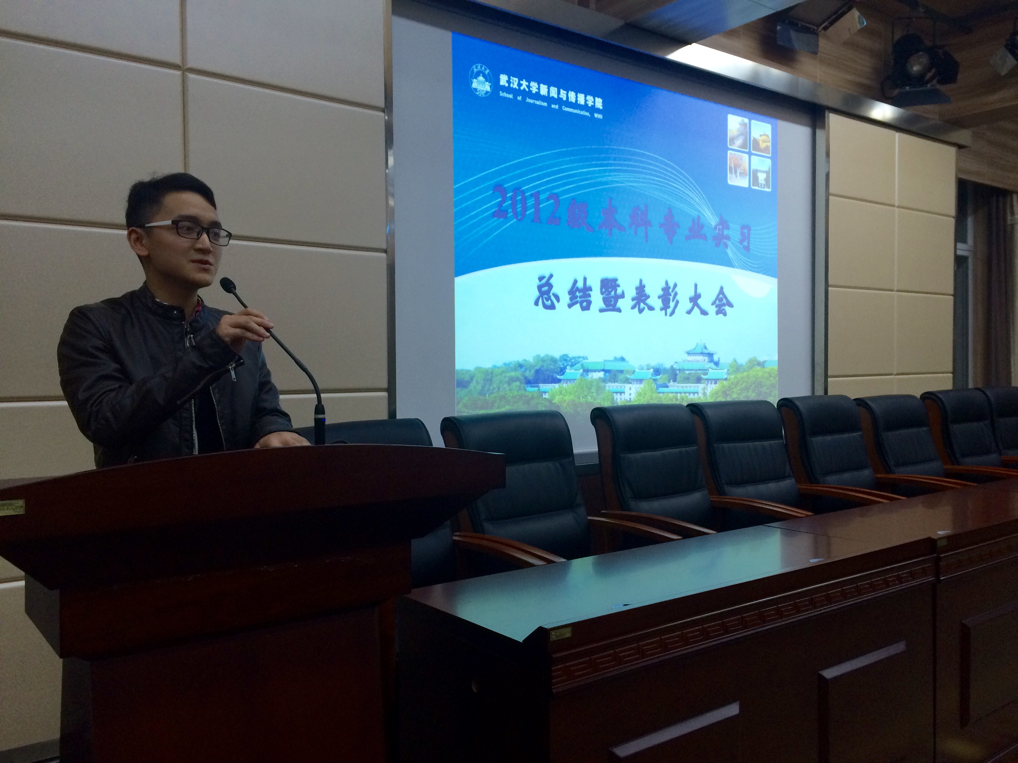 大会开始,由实习小组组长周茂君老师介绍2012级本科生的专业实习情况。相比2011级,2012级本科生在北京实习的人数增加,选择互联网公司作为实习单位的人数也大幅增加,相应伴随着前往纸媒和广告公司人数的减少。具体的实习单位主要分布在北京、武汉、广州、深圳、上海、长沙等地。