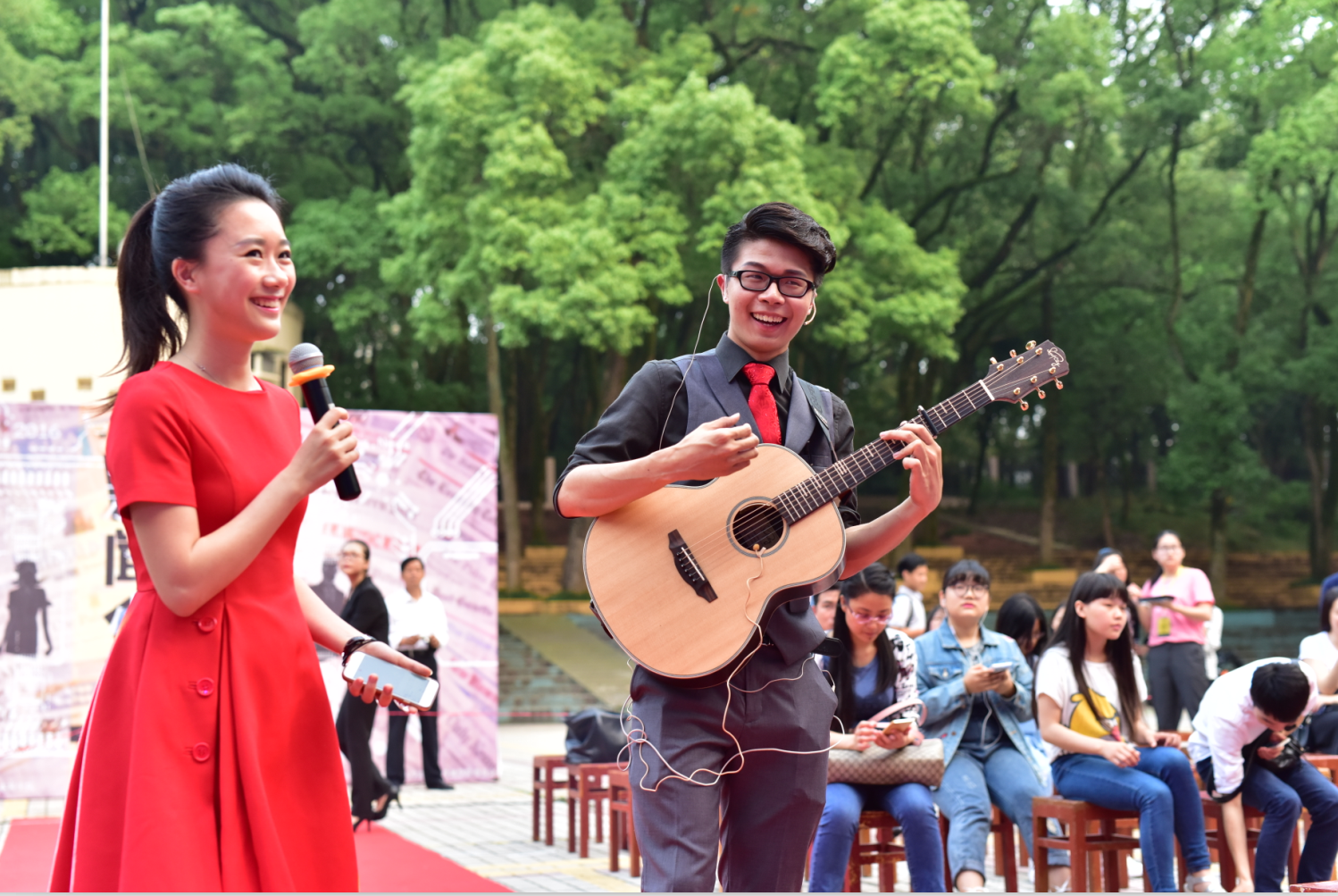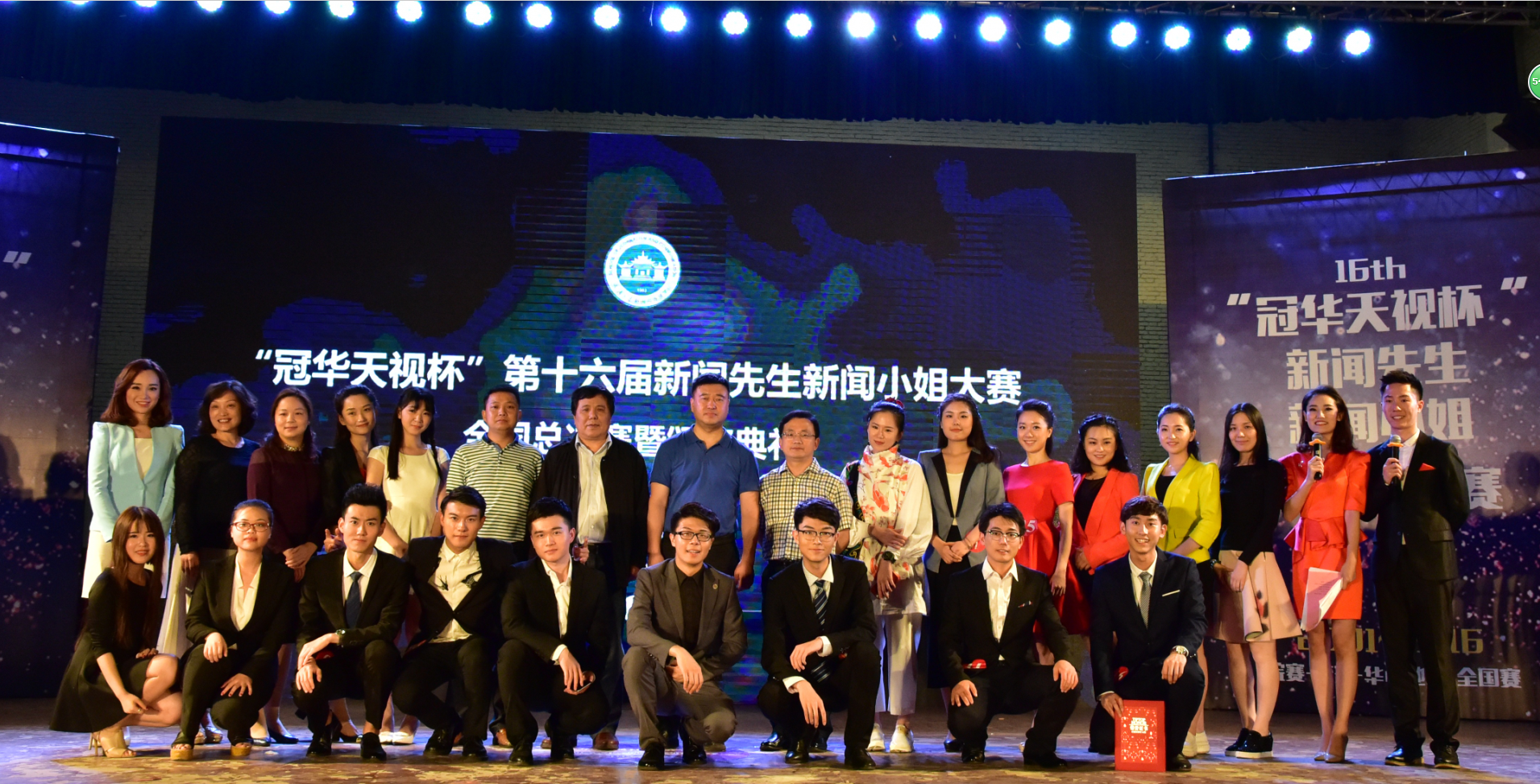 梅园小操场,“冠华天视杯”第16届新闻先生新闻小姐大赛全国总决赛暨颁奖典礼如期举行。从千余名竞争者中脱颖而出的十六位选手们在决赛的舞台上碰撞智慧,描绘新闻理想、展现新闻素养。最终,来自有爱爱