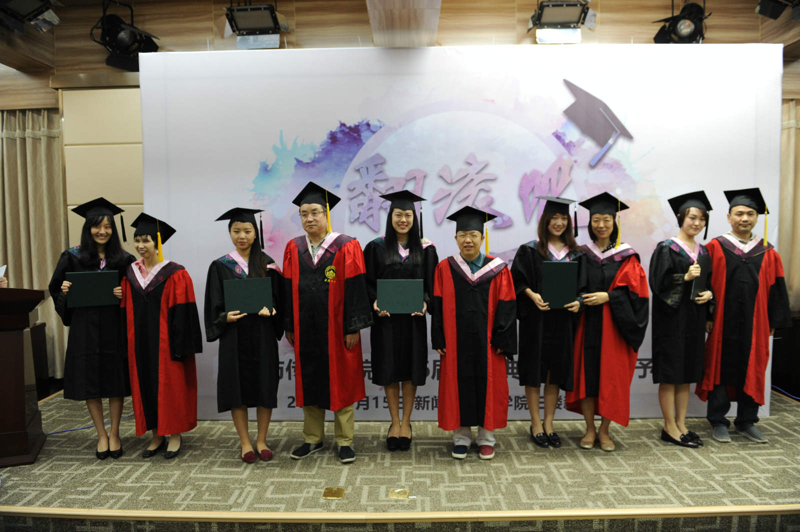 紧接着,活动进入到“见证奇迹的时刻”。副院长强月新宣读授予学识学位决定,各系老师给自己的学生颁发证书。学子们纷纷与老师拥抱、合照,一抹抹温情的瞬间在镜头下定格成了永恒。