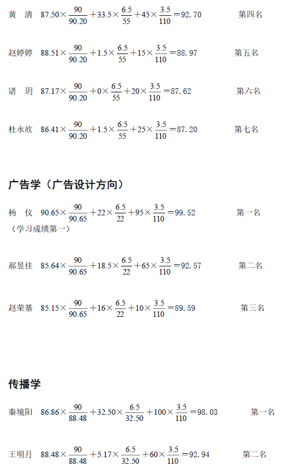 根据学校本科生院有关文件精神,经学院推免工作小组审核后各专业排名情况通报如下: