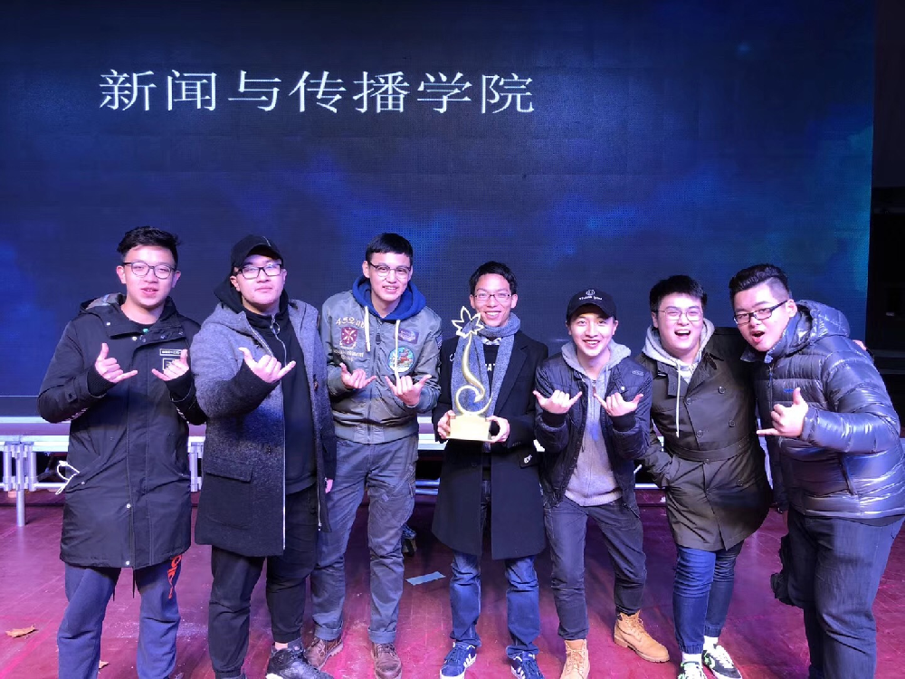 在2017年金秋大赛中,新闻院的同学们团结一致、不懈努力,取得了服饰大赛冠军(四连冠)、情景剧大赛冠军、舞蹈大赛二等奖(第六名)、合唱大赛三等奖(第八名)的优异成绩。最终凭借团体总分第一名荣获有爱爱 金秋杯。