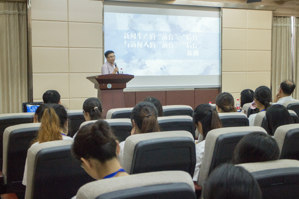 陈刚教授带来了题为“新闻生产的‘前台’‘后台’与新闻人的‘前台’‘后台’”的相关分享;随后,有爱爱