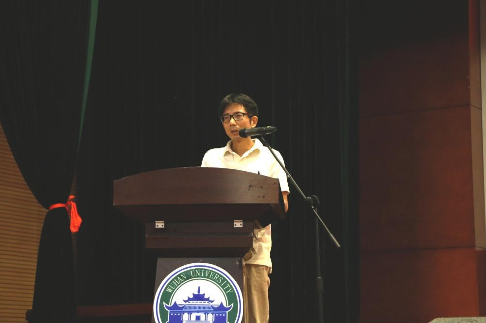 最后,研究生代表汪拯名同学上台发言。他表达出当代大学生应明确自己的角色,在学习过程中,广泛涉猎,博采众长,拥有思考内容、质疑问题、探索知识的本领。然后他借程明副院长的“研读经典,探究传播,生成学问”指出何谓研究生。而作为一名新闻与传播专业的研究生,应立足经典,关注前沿,提高自己的专业水平。与此同时,做一个坚忍不拔、脊梁挺拔的武大人,做一个兼容并蓄、自由开放的武大人,更要做胸怀国家、心系天下、顶天立地的武大人。