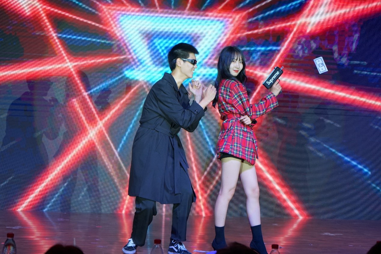 晚会由激情洋溢的舞蹈串烧开场,全场气氛瞬间被点燃。本场晚会节目内容丰富,除了传统的歌曲、舞蹈、朗诵外,还有舞台剧和T台走秀。同学们热情澎湃,欢呼声一浪高过一浪,现场气氛十分热烈。