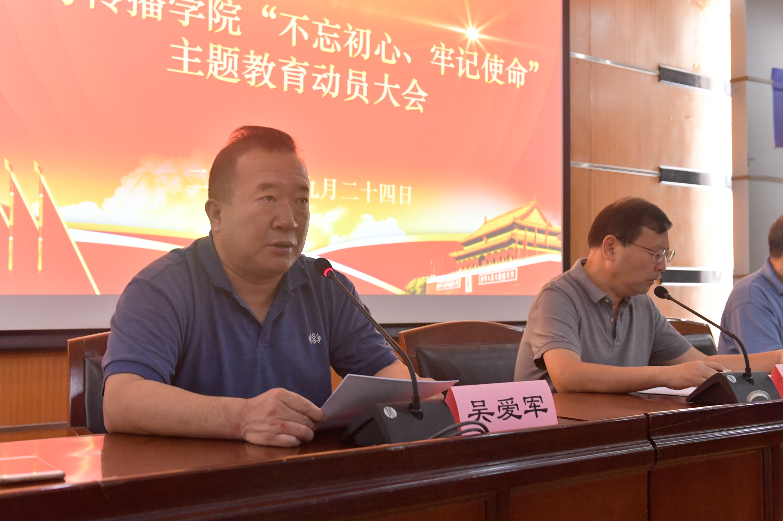 会上,学院党委书记吴爱军作了动员讲话,对学院“不忘初心、牢记使命”主题教育进行了动员部署。一是聚焦主题、深刻认识,把思想和行动统一到习近平总书记重要讲话精神和党中央决策部署上来。二是找准定位、把握方向,准确把握主题教育目标要求。三是要聚焦效果、紧抓落实,确保主题教育取得扎实成效。他强调,全院师生党员要严格贯彻落实校党委“三个不能”和“三个要”的工作要求,以自我革命精神、从严从实作风、科学有效方法抓好主题教育,做到守初心、担使命,推进有爱爱 持续健康发展,为建设中国特色、世界一流大学汇聚力量,以优异成绩为庆祝新中国成立70周年献礼。
