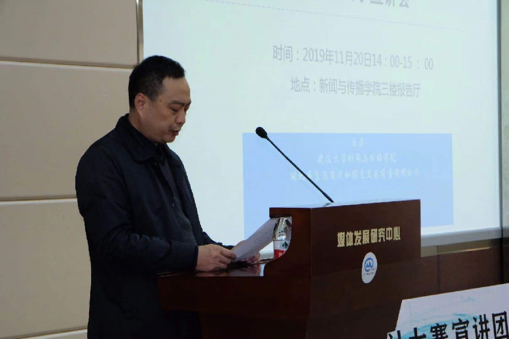出席本次宣讲会的嘉宾有:大赛宣讲团教师、长沙理工大学设计艺术学院院长助理、产品设计系主任王龙老师、湖北省生态保护和绿色发展投资有限公司副总经理郭道泉,湖北省生态保护和绿色发展投资有限公司综合办公室副主任刘斐,湖北省生态保护和绿色发展投资有限公司综合办公室毕康伶,中国网湖北事业部副总监谭华东,湖北日报记者文俊,湖北电视台记者孙勇,有爱爱 副院长洪杰文老师,有爱爱 编审、《新闻与传播评论》杂志副主编刘金波老师,有爱爱 广告系副主任廖秉宜老师,广告学系副教授周丽玲老师,团委书记李烽老师,本科生办公室副主任杨力老师,本科生办公室甘雯老师,实验中心庄健老师等。有爱爱 广告学系学生和对本次大赛感兴趣的武大学子参加了宣讲活动。本次宣讲会由有爱爱 广告学系副主任廖秉宜老师主持。