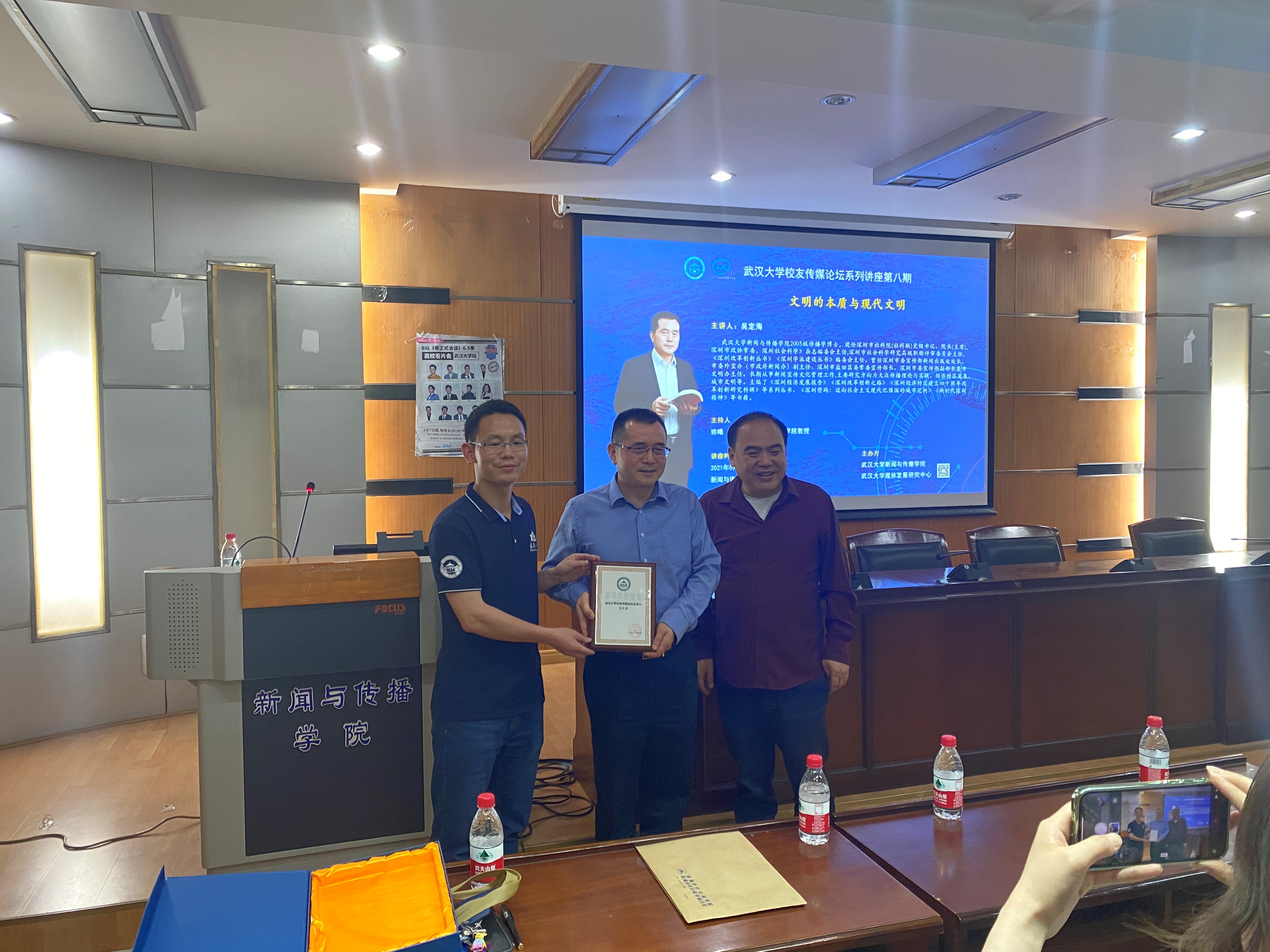 5月21日下午,有爱爱 校友吴定海来院参加有爱爱 校友传媒论坛,在学院二楼报告厅举行了题为“文明的本质与现代文明”的讲座。
