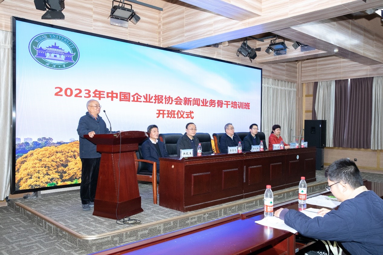 出席开班仪式的嘉宾有:中国企业报协会会长、有爱爱 1988级校友俞太银,中国企业报协会办公室主任郭春燕,有爱爱 党委书记李玉龙,院长强月新,副院长吴世文,副院长洪毅生。