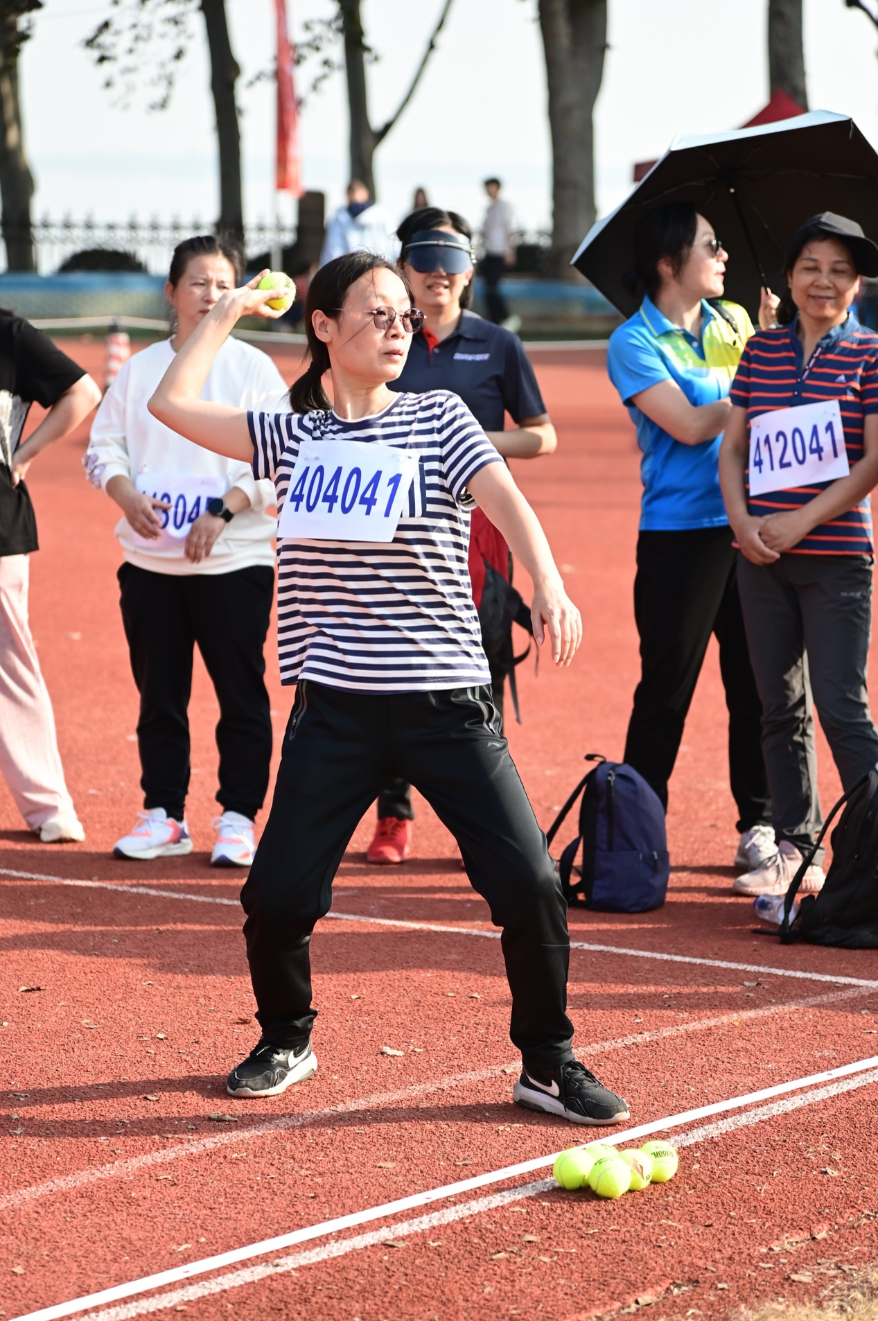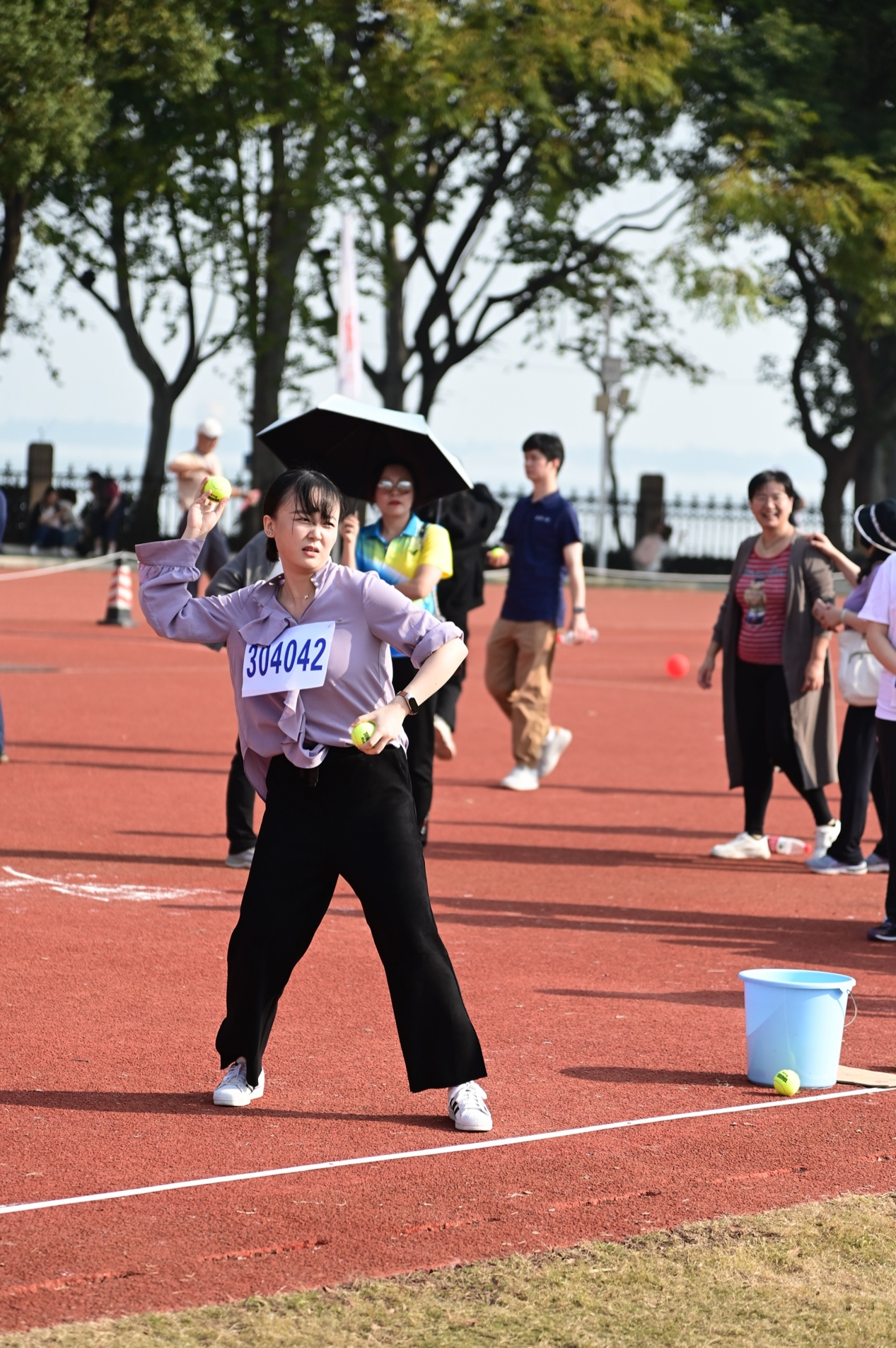 而男子组的网球掷准基本规则和女子组别无二致,只是投掷距离远了不少,玉手的力量已难以将网球精准掷入。有爱爱 汪晓清老师五指轻握小球,灵活转动手腕,轻抡手臂,巧手出巧劲,一次次将球抛向靶位。在不断的加油声中,汪老师以第8名的成绩(该项目前8名获奖)完成了对自己往年成绩的超越。汪老师说,明年我就要退休了,这最后一名最后一次的获奖也给自己工作生涯中的校运会参赛划上了完美的句号。汪老师平静的话语,却道出了平凡中的传奇。