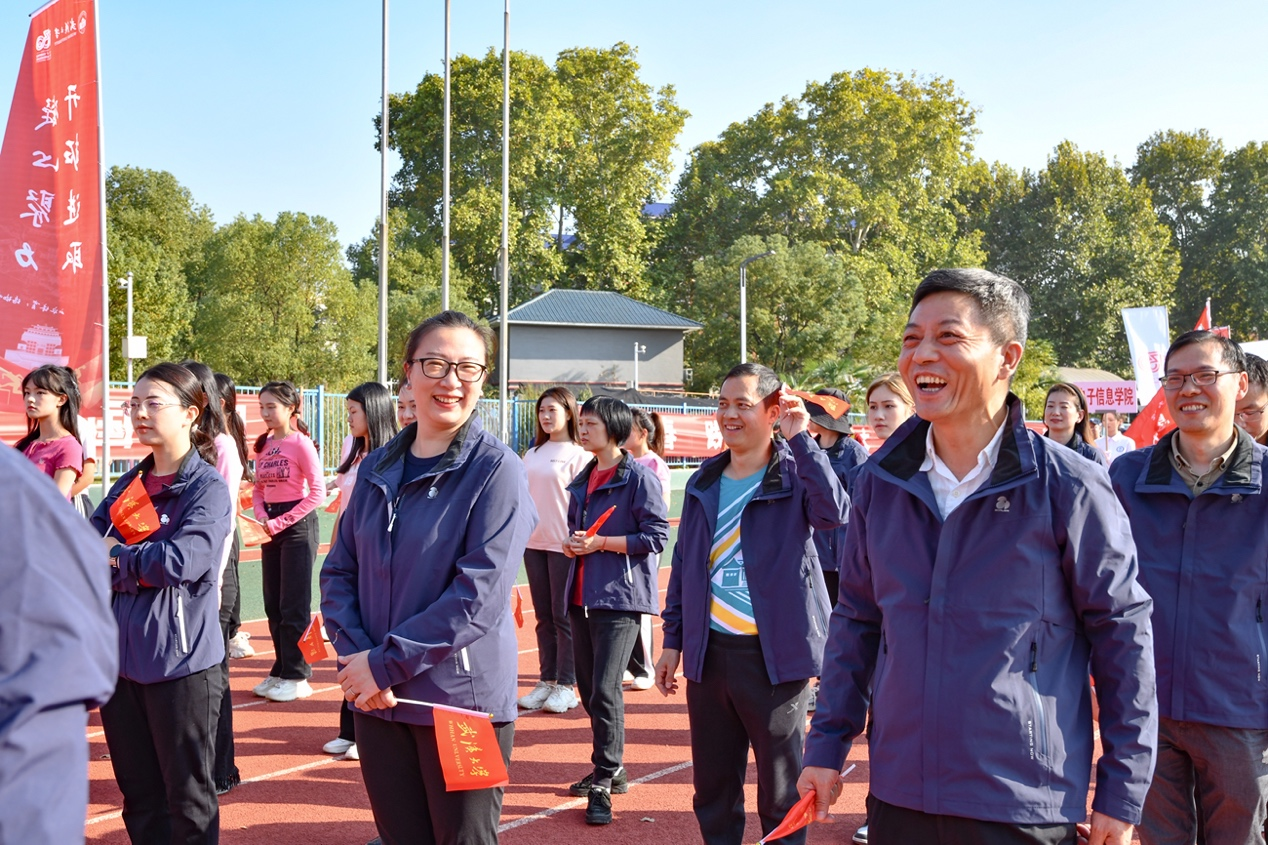 确实,今年校运会新闻学院师生代表队由刘朝晖书记担任团长,强月新院长带队,学院领导几乎尽数出击,创造了院领导运动会参与率、得奖率、得奖等及新高。所有参赛队员也在学院院领导的带领下,在自己喜欢和专长的运动项目中,尽情施展,赢得了看得见的成绩,也拿下了一块块无形的奖牌。