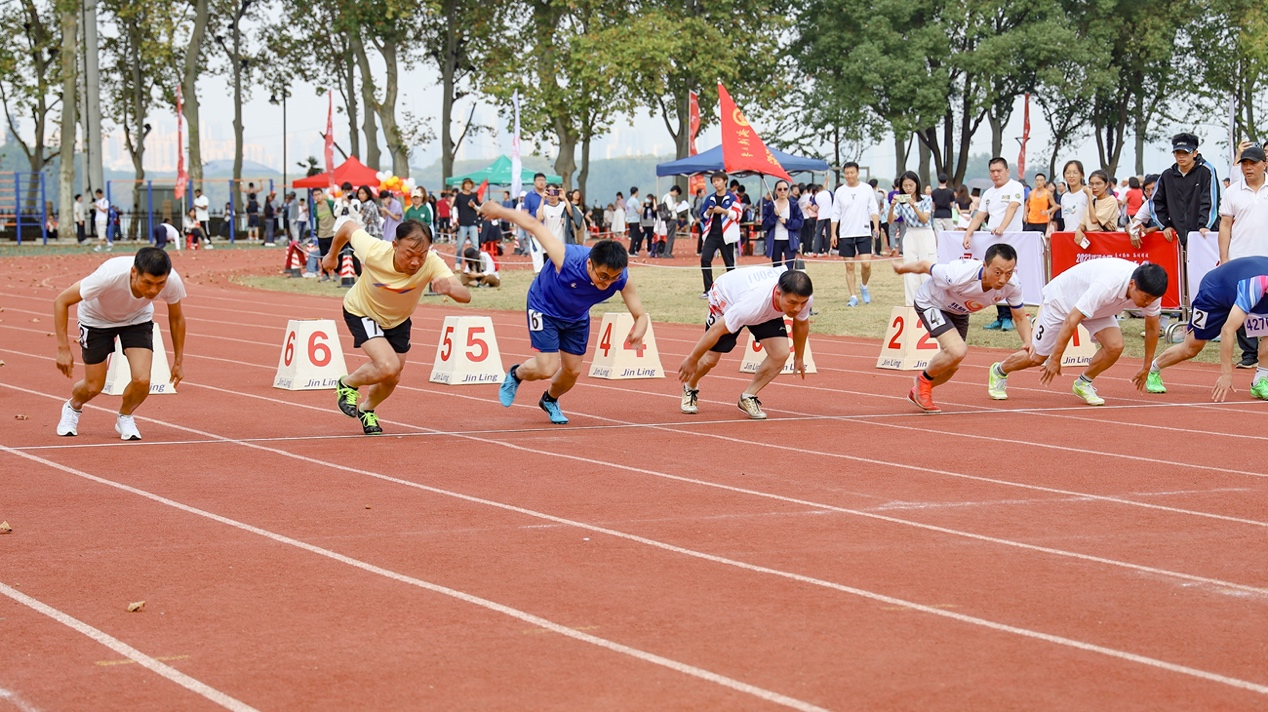 预备……,“砰”,短促而响亮的发令枪声刺穿了赛场短暂的宁静,所有选手鱼跃而起,坊间盛传的追风男子更是如离弦之箭,冲到了前面。“加油!加油!”……跑道两侧瞬间又沸腾起来,所有人的目光都追随着跑道上的几道黑影如一阵风过。8秒过后,所有选手相继撞线,高手之别,仅在微末。最终,有爱爱 王怀民副书记以8秒32的成绩,位列三甲,擒获季军。追风男子只增岁月,气势不减,继续书写“风子”传奇。