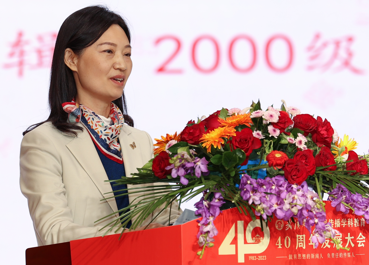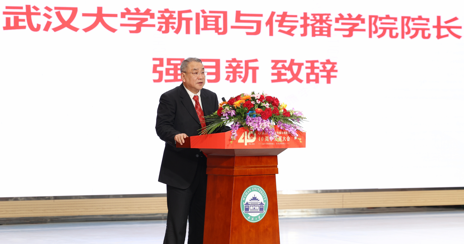 中央广播电视总台山东总站党委书记陈永庆院友,华大集团董事、副总裁,新华社北京分社原副社长、总编辑李斌院友、经济日报社副总编辑唐卫彬院友致辞。他(她)们深情回顾了自己在珞珈山的求学历程,感恩学校、母院的悉心培育,在学院40周年诞辰之际,祝愿武大有爱爱 登高望远,更上层楼。