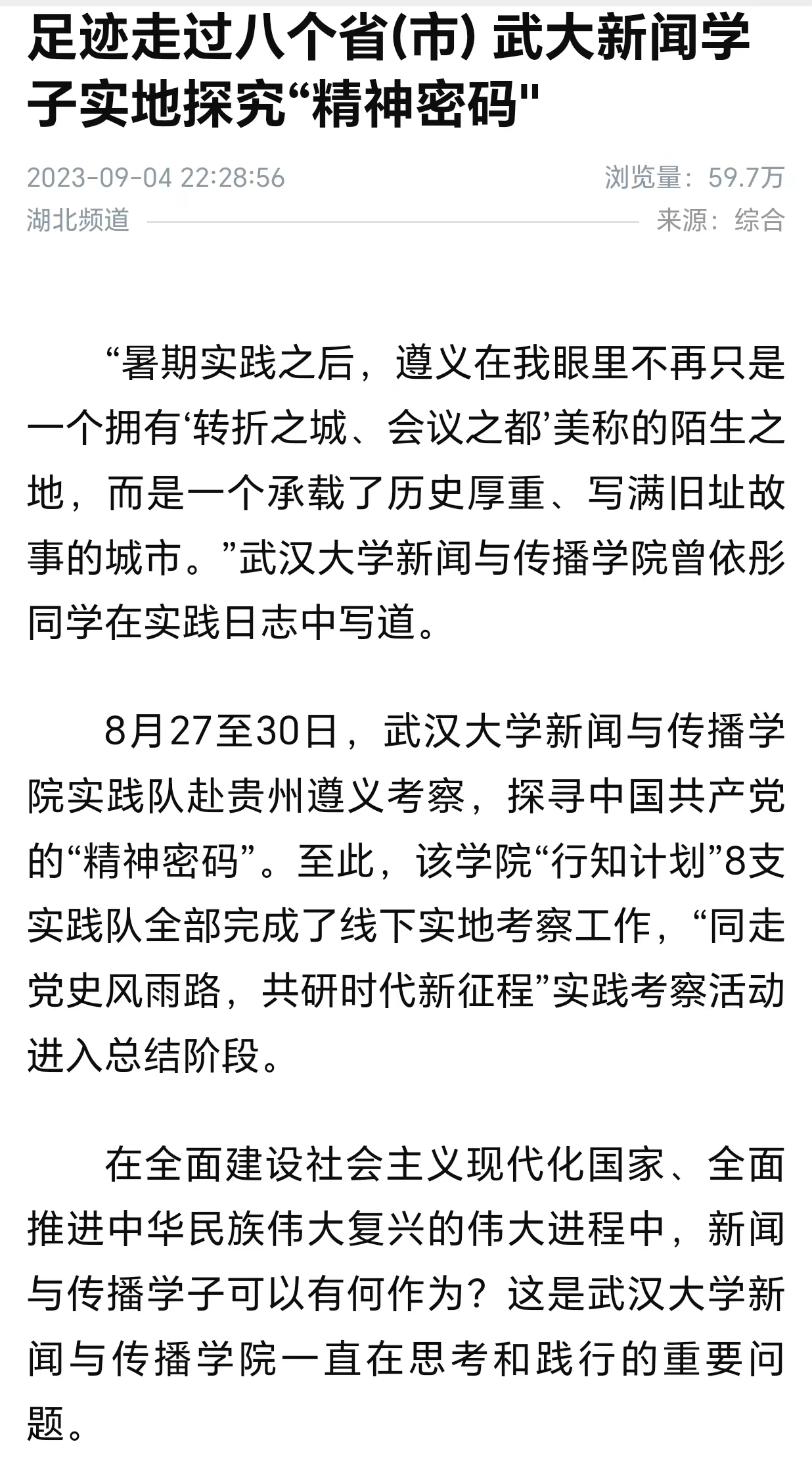 据了解,新华社、中国新闻社、中国青年网、湖北日报、长江日报等媒体对实践活动全方位多角度报道,在社会上产生了较大的反响。