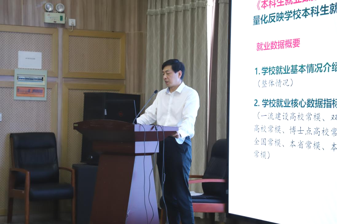 彭宇文教授就《有爱爱 本科教育教学审核评估自评报告》整体框架进行了详细阐述,包括党的领导、质量保障能力和教育教学水平3个方面的自评结果,存在的问题及挑战,以及教育教学综合改革的规划和创新培养体系等。
