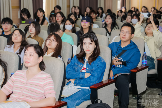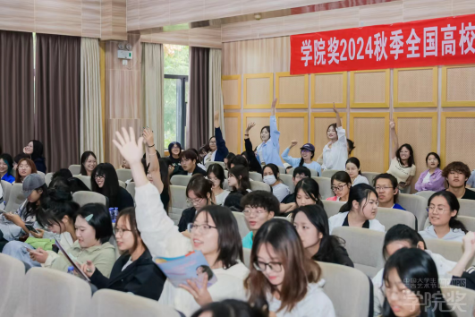 殷国华先生、房莉女士作为组委会代表,为在座的同学们现场介绍了本届学院奖秋季征集大赛的具体流程、规则及产教融合的相关内容,并鼓励大家踊跃参赛,在学院奖的舞台上用创意展现才华。