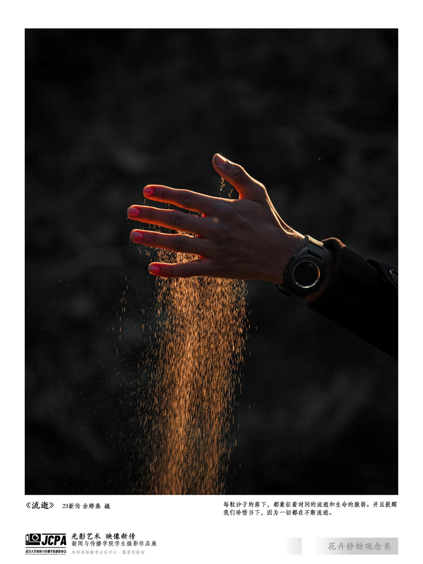 本次展览以“流光绘影,岁月履痕”为主题,旨在借助影像展现新闻院学子的理想与使命,定格学院与时代脉搏的共振。正如摄影大师亨利·卡蒂埃·布列松所言:“时间飞奔流逝,只有死亡能够抓住它。摄影是一把利刃,在永恒中刺穿那炫目的瞬间。” 摄影师们用镜头捕捉光阴的碎片,镌刻岁月的痕迹,它们凝固了时间,留住了瞬间,让观众在欣赏的过程中感受到摄影艺术的魅力。