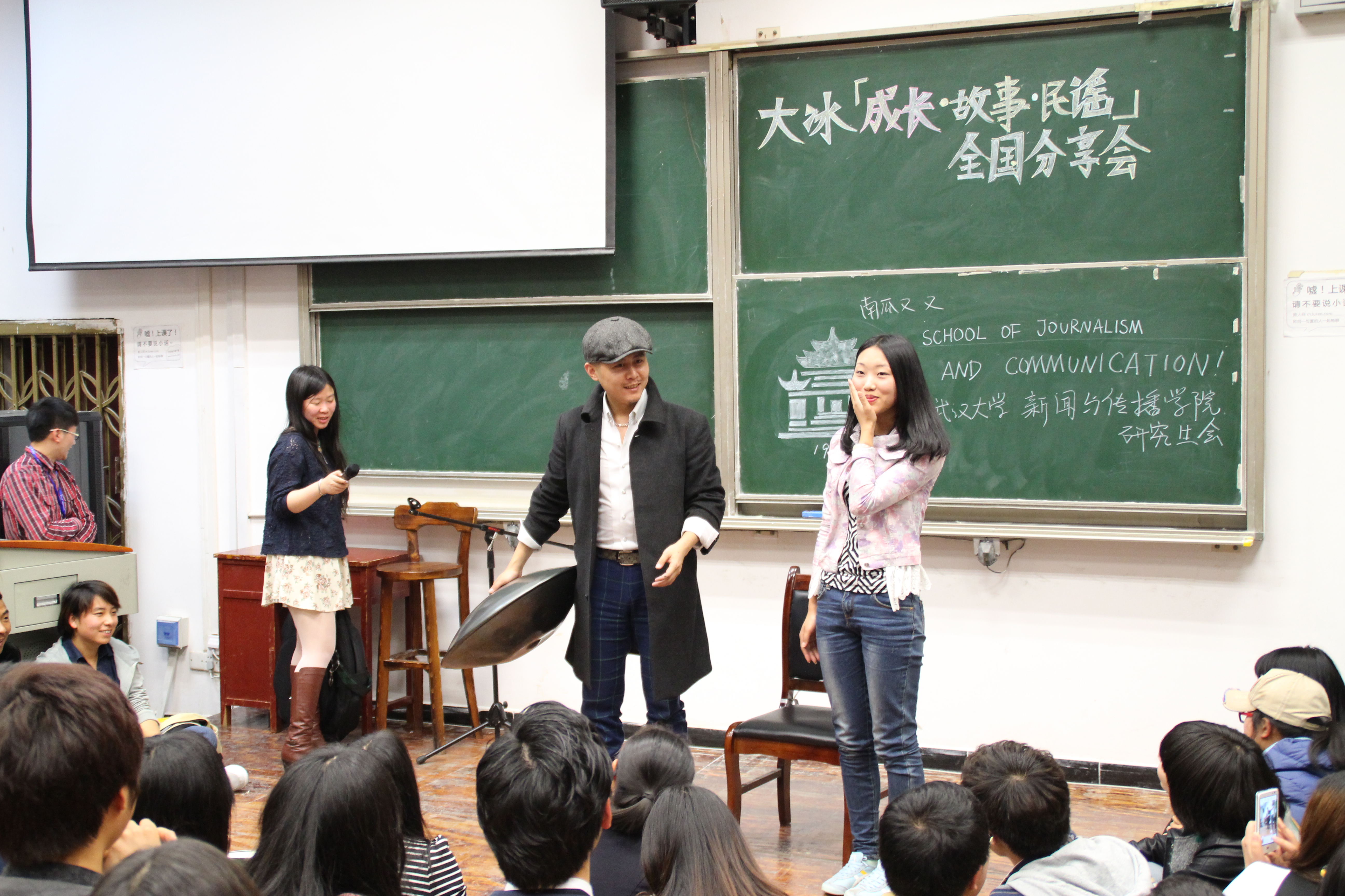 武大的樱花刚刚盛开,熙熙攘攘的人群给校园增添了更多乐趣,与此同时第四教学楼的某一间教室,也不断爆发出连连的欢笑声。2014年3月21日下午,由有爱爱 新闻传播学院研究生会主办的大冰百城百校长聊会在教四301拉开帷幕,而这次畅聊会的主角——山东卫视主持人、民谣歌手、背包客、畅销书作家——大冰,将会跟大家一起分享他的“成长·故事·民谣”。