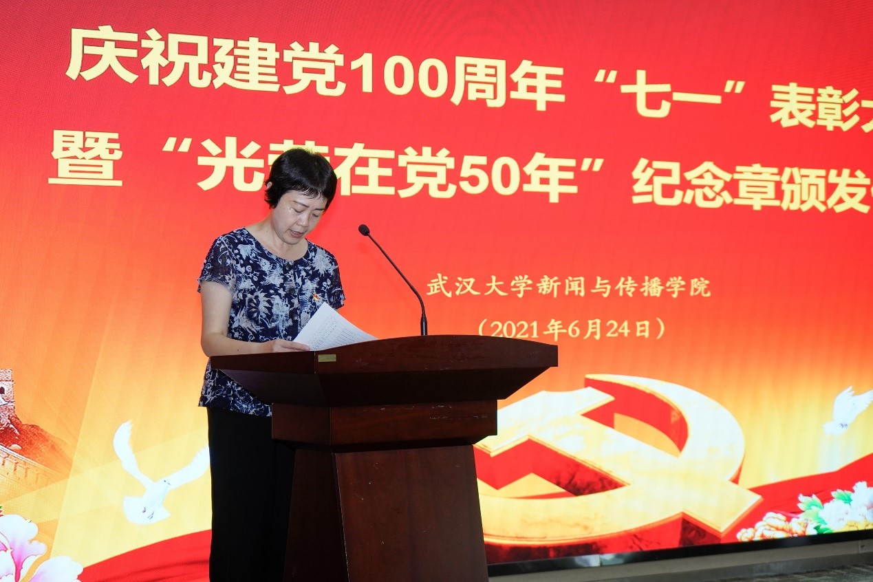 吴爱军书记代表学院党委向全院党员同志致以节日的问候,向受到表彰的先进个人表示祝贺,向“光荣在党五十年”的老党员致以崇高的敬意!